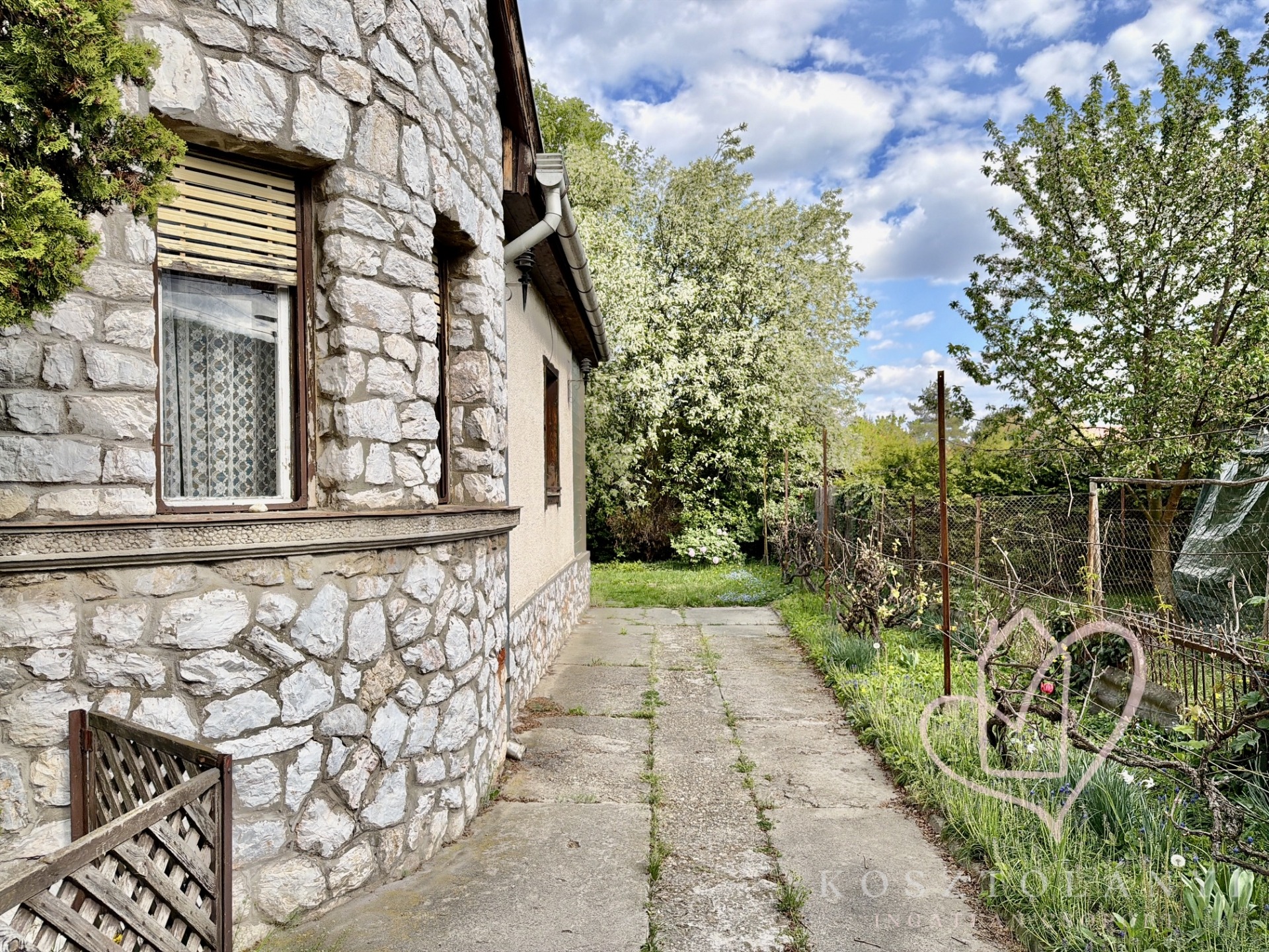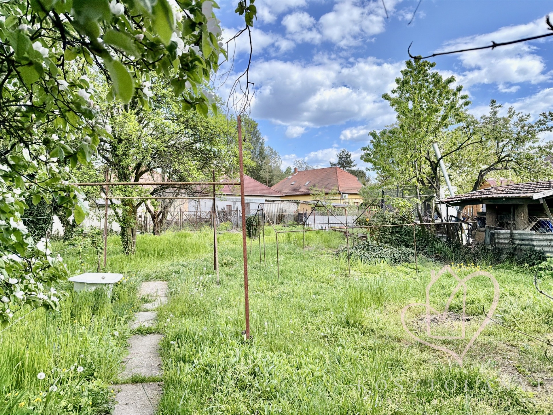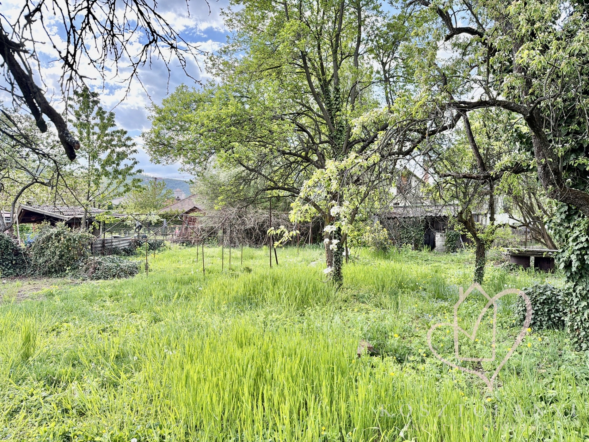 Az 1057 m²-es, parkosított telken saját fúrt kút gondoskodik az öntözésről, a gazdag termést pedig birsalma-, körte-, szilva- és meggyfák garantálják.