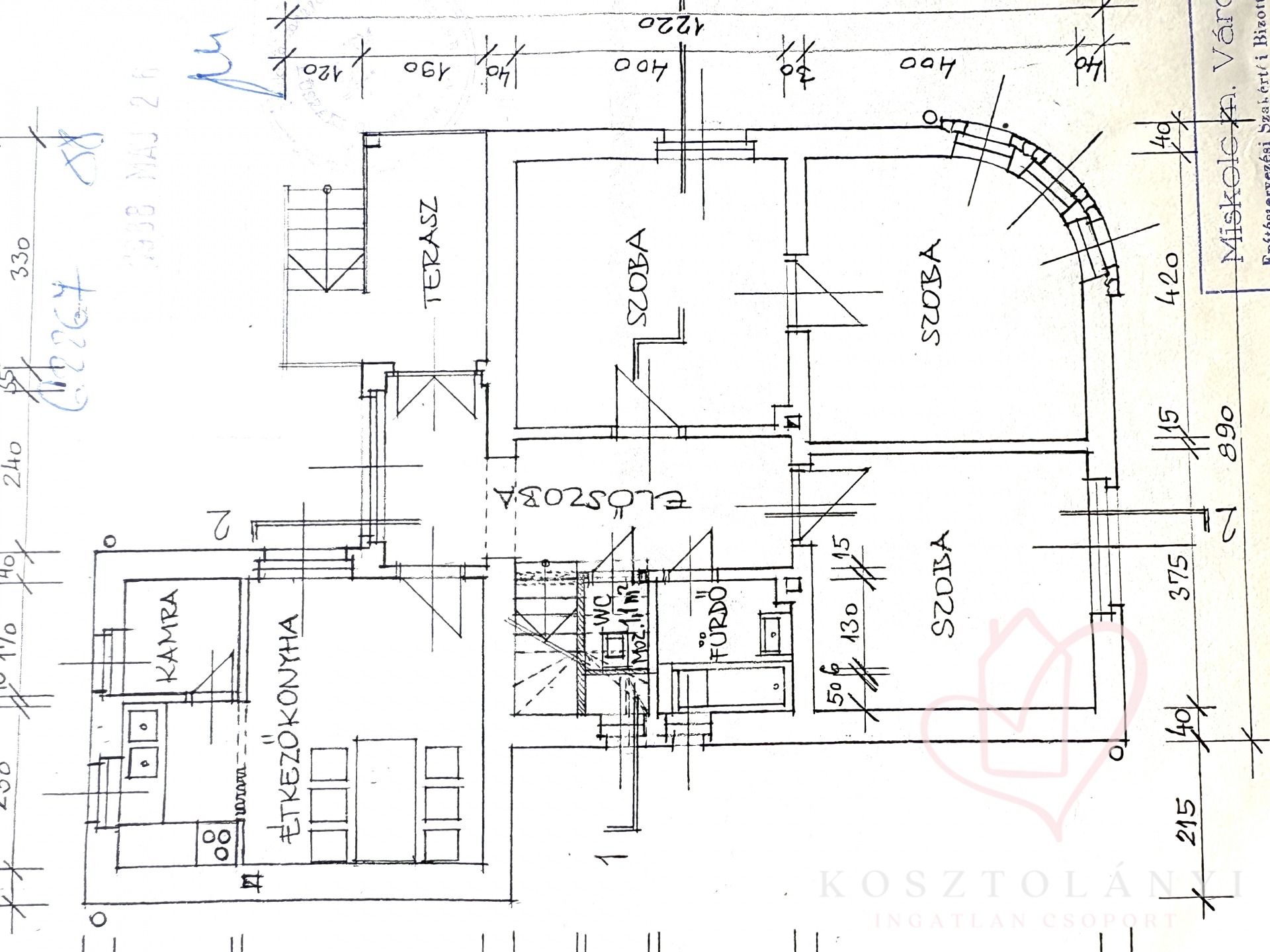 *** Elosztás: Konyha-étkező, 4 különnyíló hálószoba, 1 fürdőszoba és 2 külön mellékhelyiség.