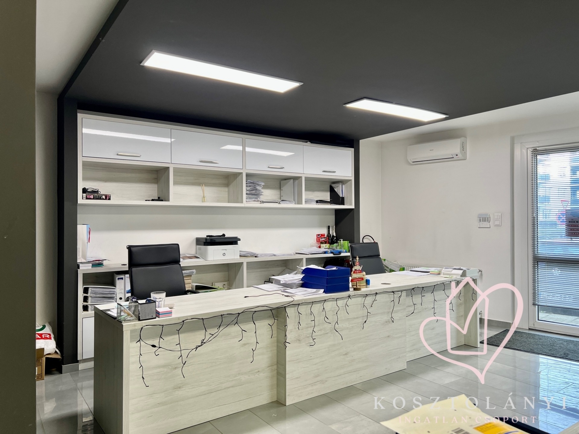 Hűtő-fűtő klíma, minőségi irodabútorok , energiatakarékos LED világítás igényes műszaki és esztétikai állapot!