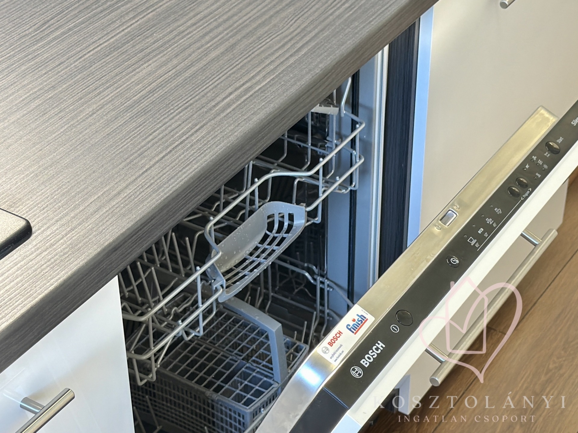 ✅ Gépesített álomkonyha: A vételár részét képezi a prémium, beépített konyhabútor, amely Bosch mosogatógéppel, sütővel és indukciós főzőlappal felszerelt.