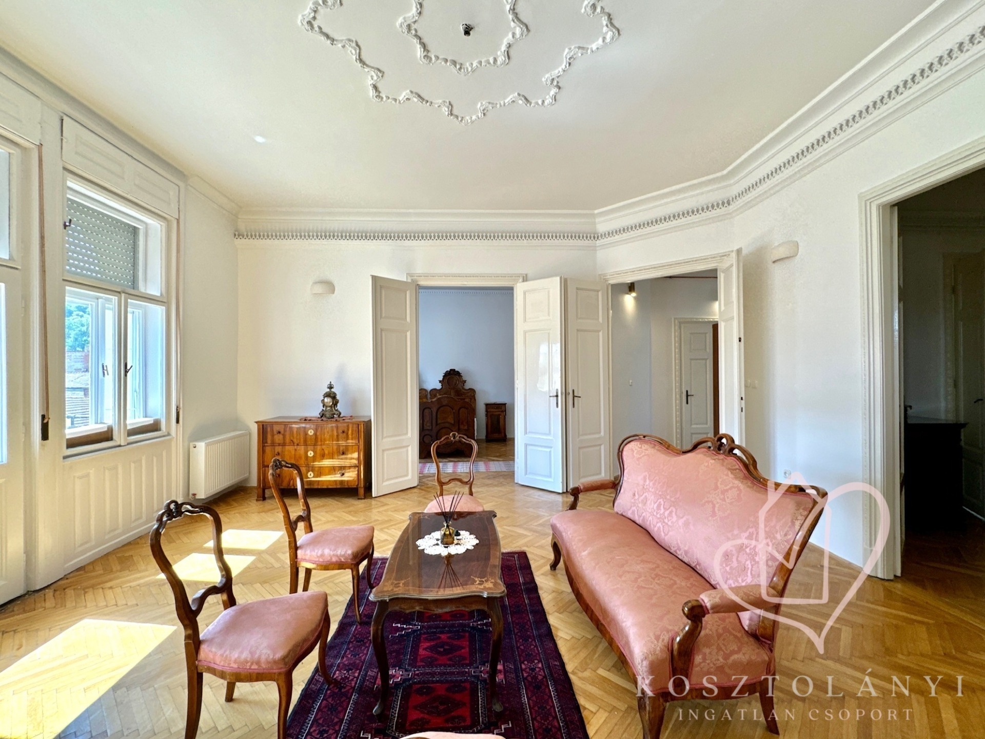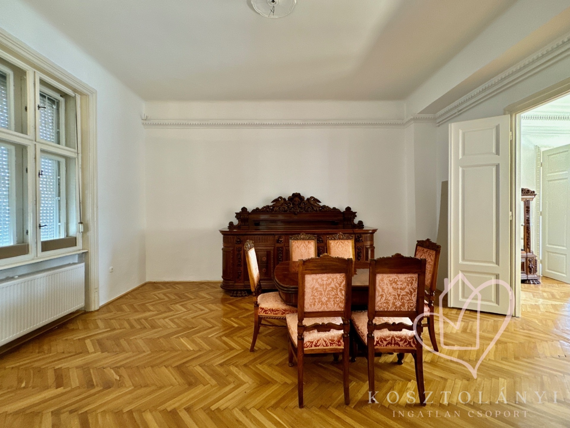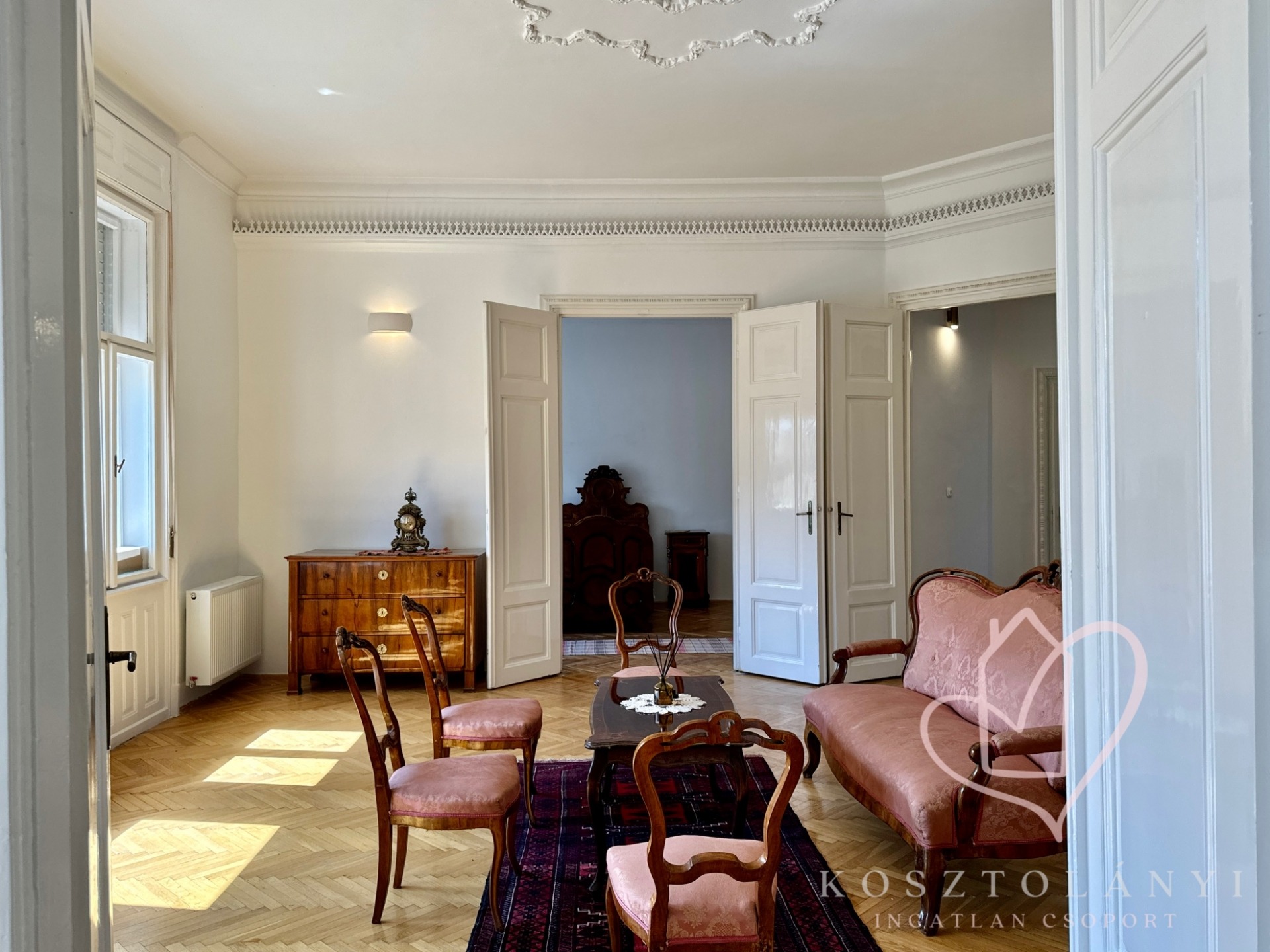 Az elegáns kétszárnyú ajtókkal nyíló, nagy méretű szobák, lenyűgöző látványt nyújtanak, és kényelmes életteret biztosítanak akár többgyermekes család számára is!