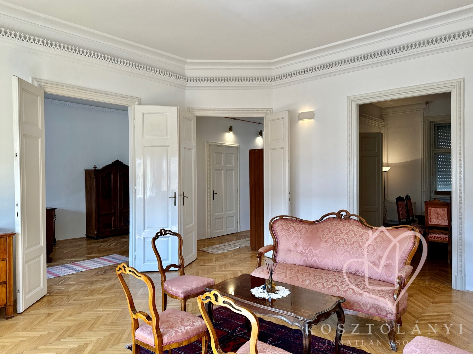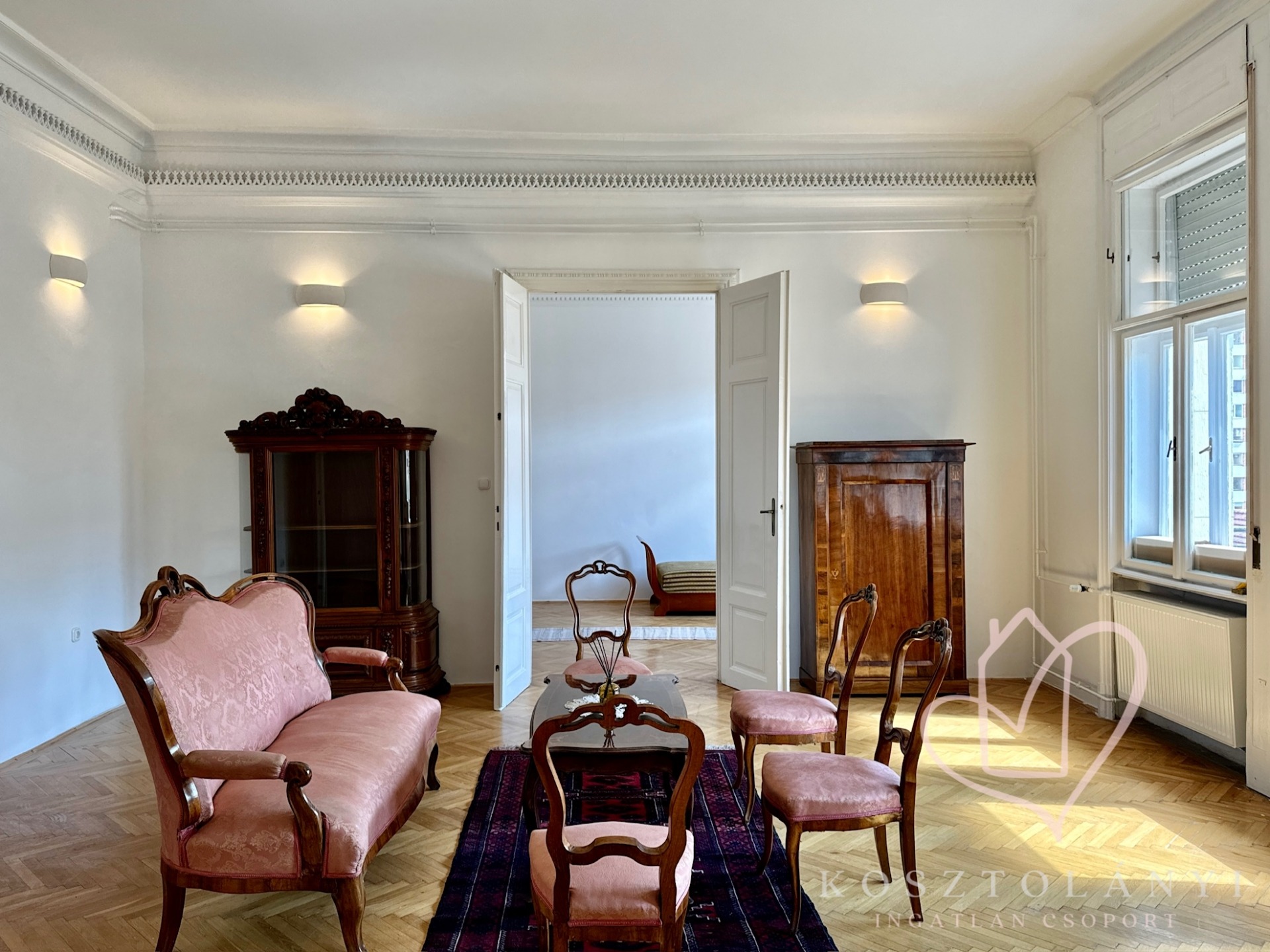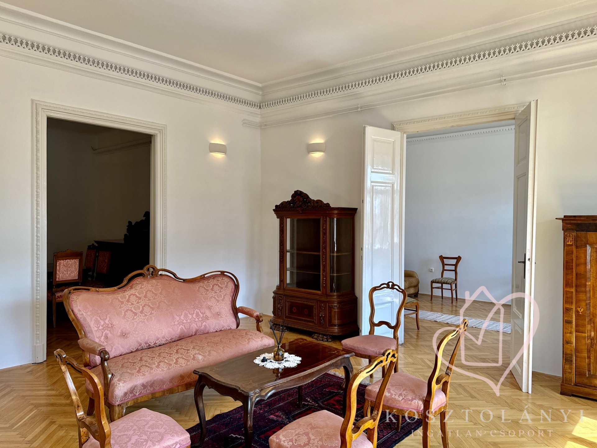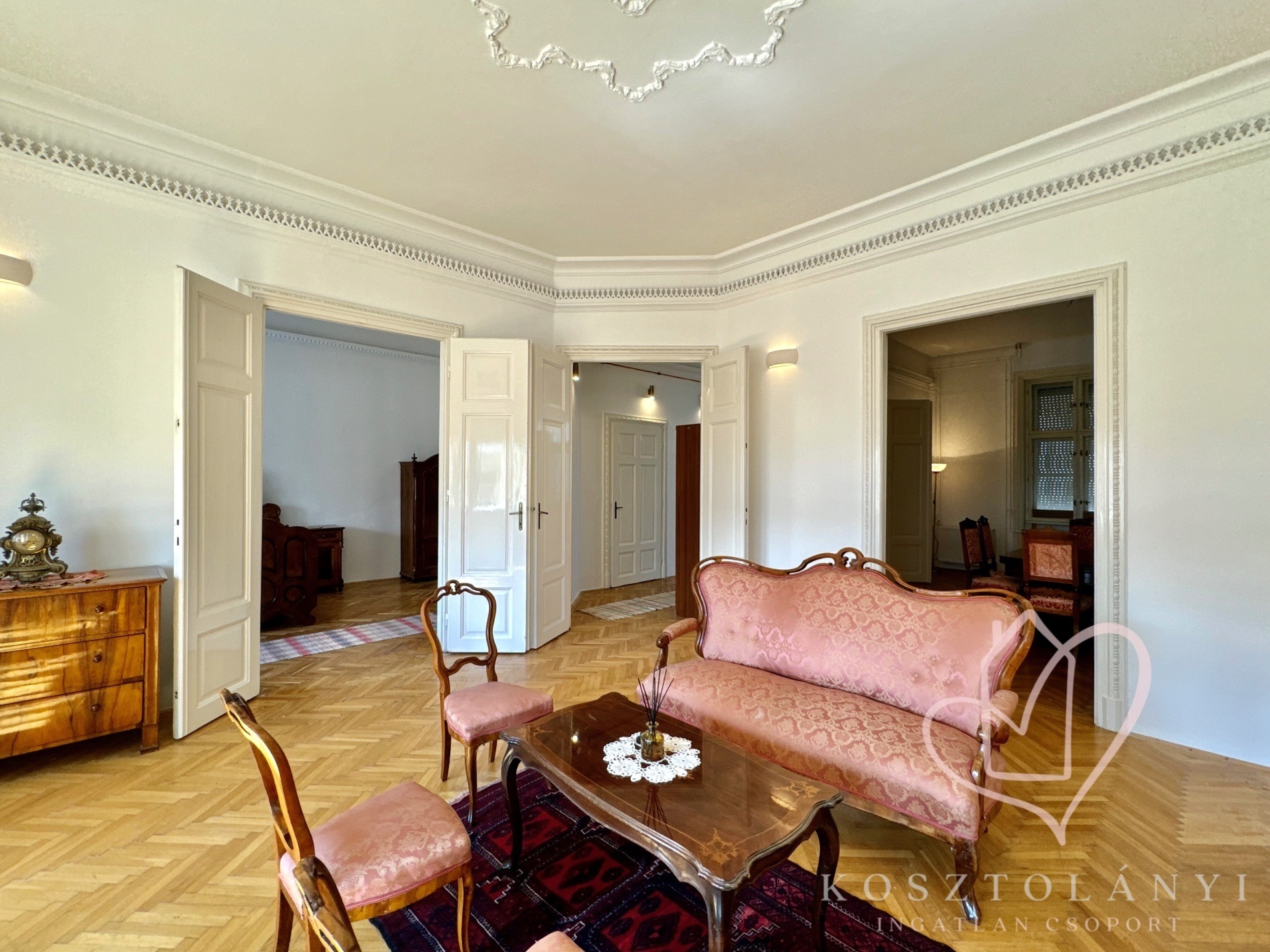 Az elegáns kétszárnyú ajtókkal nyíló, nagy méretű szobák, lenyűgöző látványt nyújtanak, és kényelmes életteret biztosítanak akár többgyermekes család számára is!