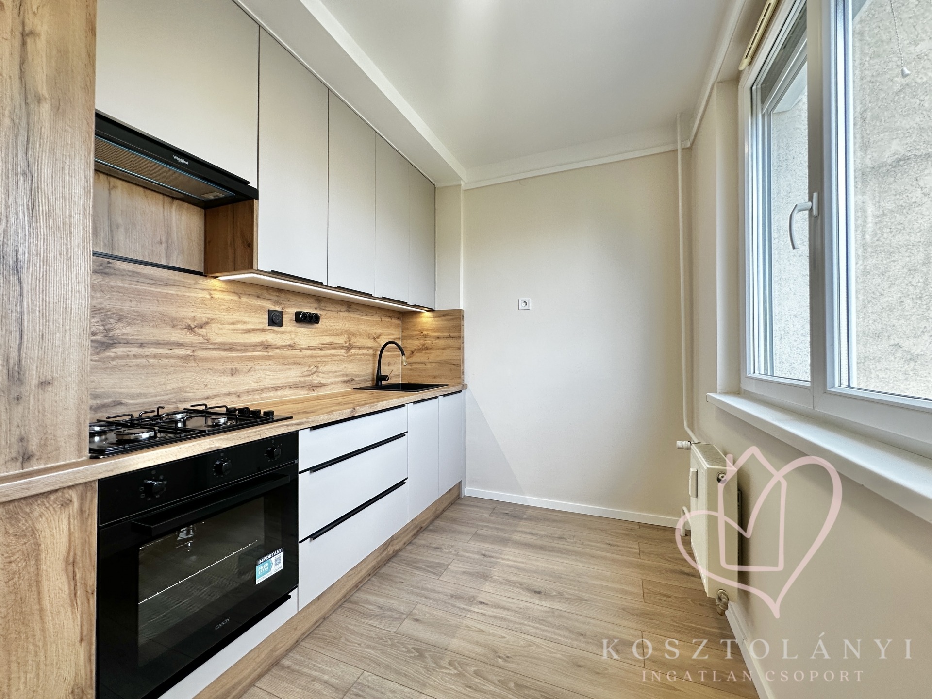 -A lakást 2025-ben teljesen felújították, prémium minőségű gépesített konyhabútorral felszerelt /villanysütő,gázfőzőlap,páraelszívó,ledes fények)