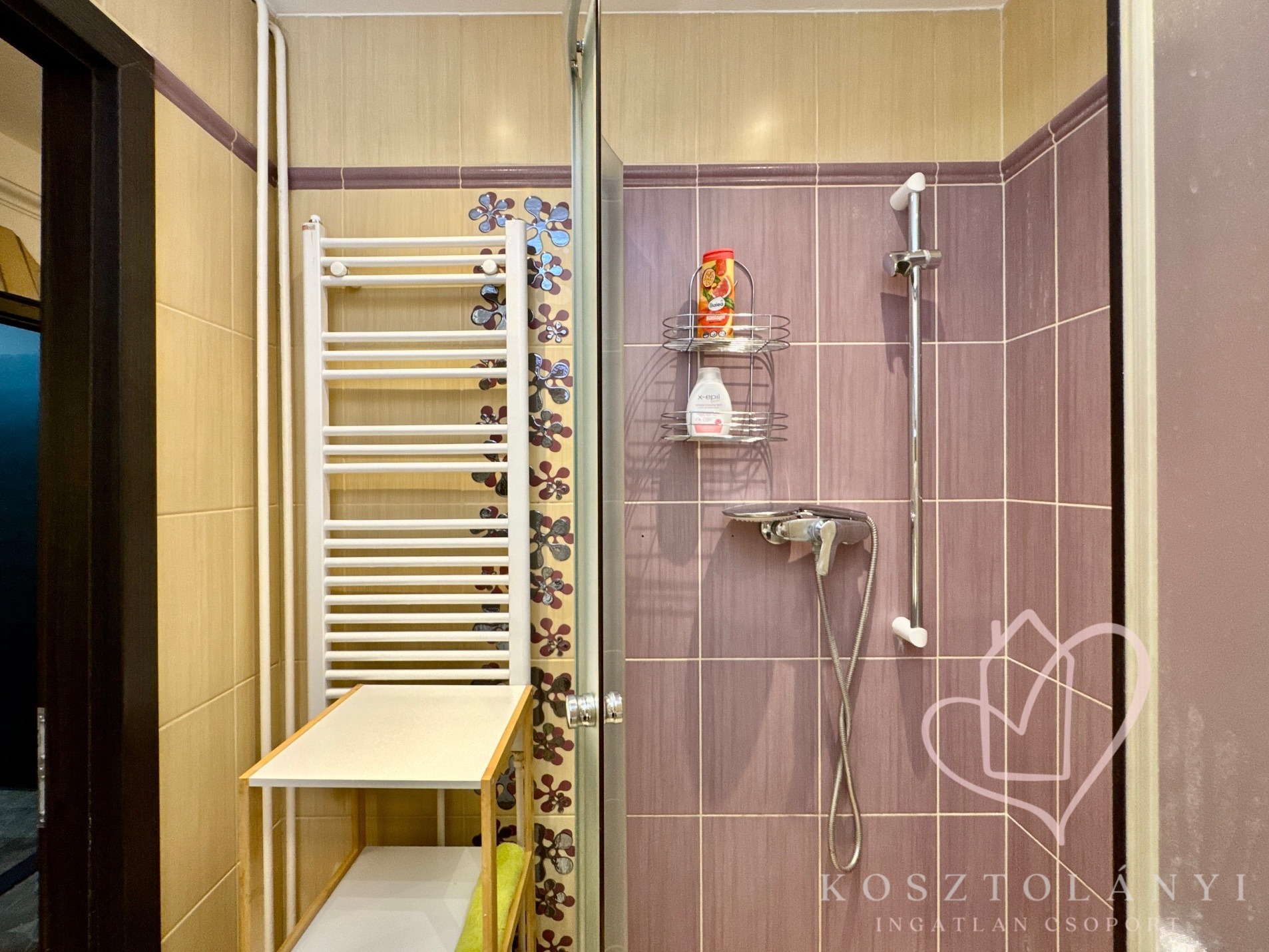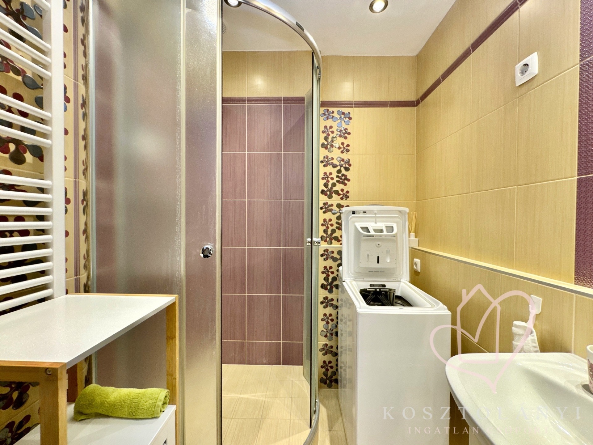 - Elegáns zuhanykabinos fürdőszoba került beépítésre